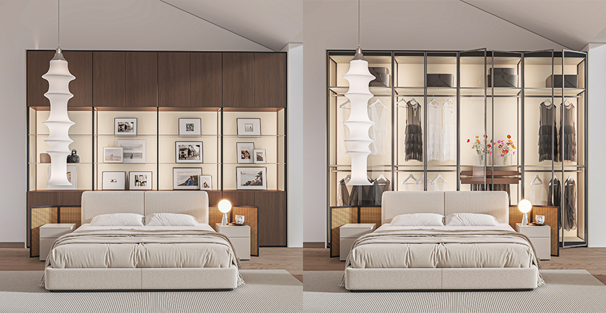 支持衣柜、書柜、酒柜、餐邊柜、展示柜等多種功能切換,滿足不同生活場(chǎng)景。